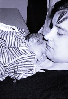 Tijmens favoriete slaapplaats, maar ook de fijnste houding voor Hanneke.